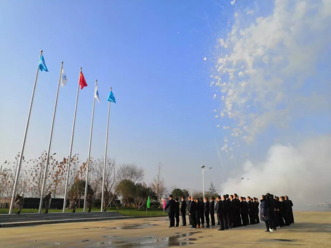 18日清晨8時58分,國歌奏響、禮炮齊鳴,五星紅旗與四面承載著雅泰精神的司旗在江蘇雅泰科技產(chǎn)業(yè)園里冉冉升起,迎風(fēng)飄揚(yáng)。這場莊嚴(yán)的升旗儀式,是雅泰進(jìn)發(fā)未來十九年而寫下的第一筆,同時也是打破自身格局、推進(jìn)自身創(chuàng)新,開啟二次拼搏的新征程。