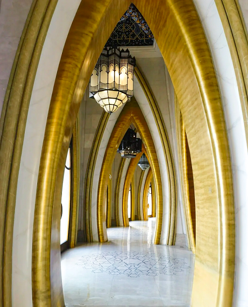 外飾面通過雅泰集團(tuán)生產(chǎn)的黃褐色金屬光澤的鋁單板表達(dá)出輕盈、時(shí)尚的品質(zhì),內(nèi)核金色磚紋肌理表達(dá)出濃烈的新疆地域文化特征,整個(gè)建筑如盛開的金色雪蓮。