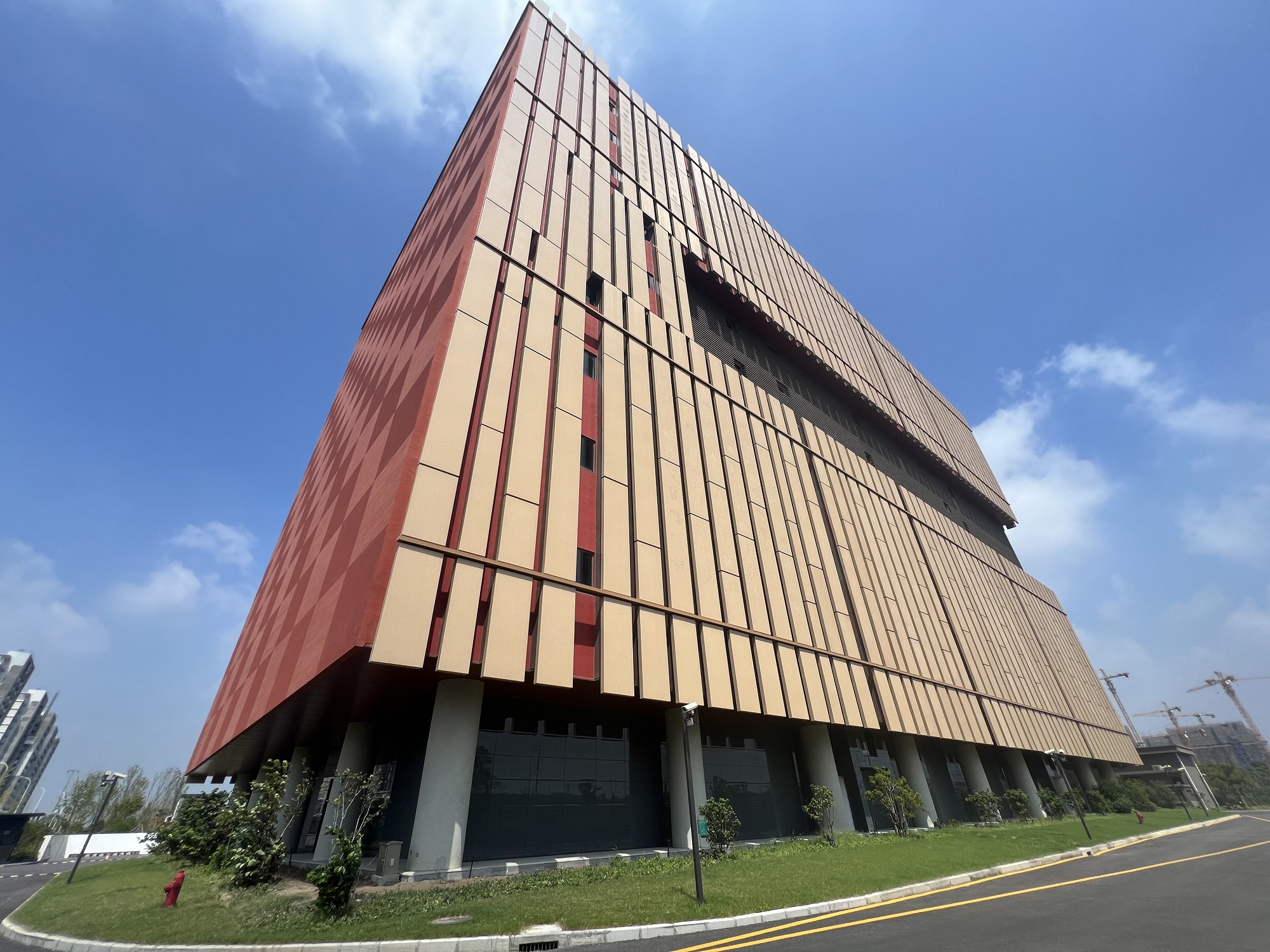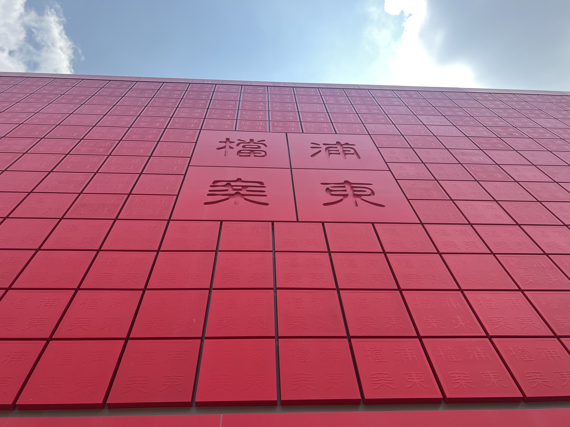 當(dāng)走近位于百潤(rùn)路100號(hào)的上海浦東新區(qū)檔案館時(shí),瞬間被這座充滿中國(guó)文化底蘊(yùn),用一方方紅色印章與一片片原色竹簡(jiǎn),巧妙搭配的建筑深深吸引。