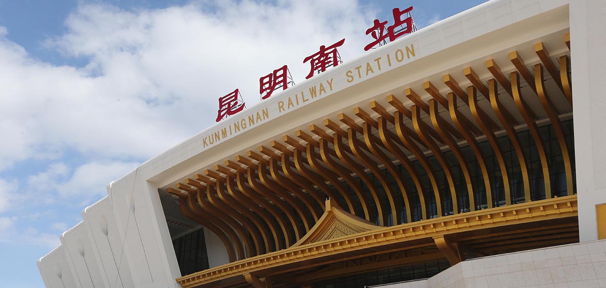 昆明南站(Kunming Nan Railway Station):位于云南省昆明市呈貢區(qū)吳家營街道白龍?zhí)渡侥_之西,坐東向西,東邊是山區(qū),西距昆明市政府大樓約3公里、滇池約7公里,南面是西南聯(lián)大舊址和呈貢大學(xué)城,北距昆明站約28公里。正面造型為孔雀開屏、鮮花綻放。